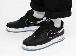 Upper: Premium black leather with a reflective gradient Swoosh transitioning from black to white.