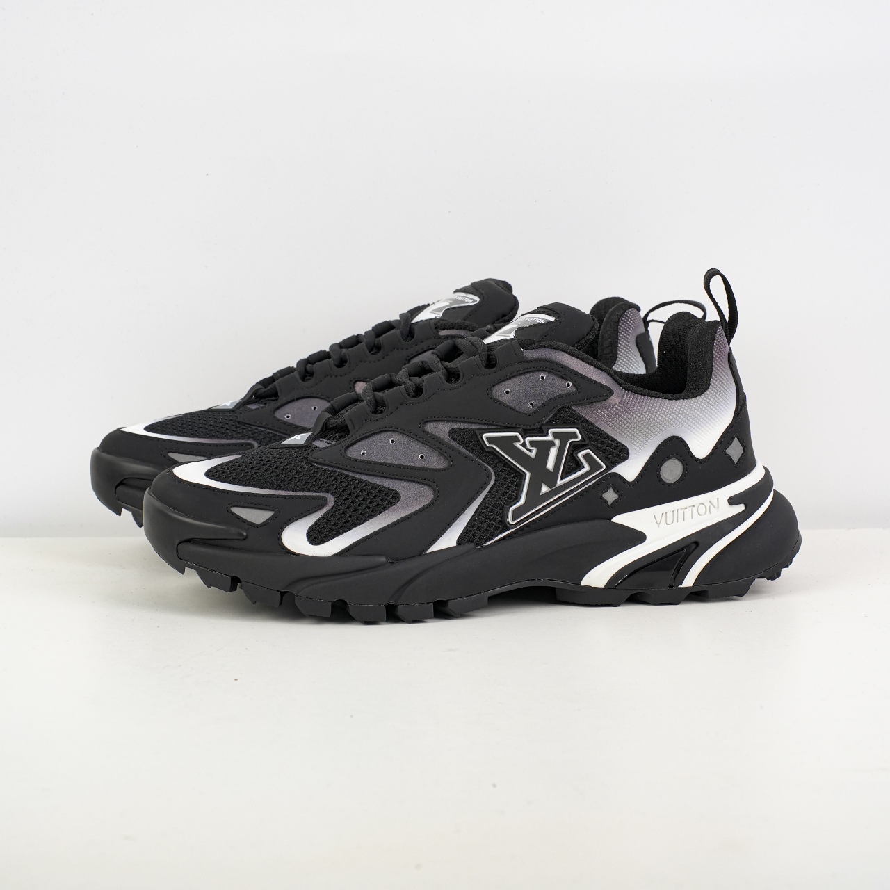 Upper: Crafted from supple black calfskin, featuring the iconic Monogram pattern subtly embossed on the side panels.