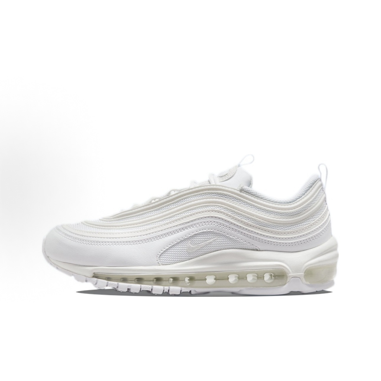 Upper: Constructed from a combination of recycled mesh and synthetic leather in a clean white finish. The design retains the iconic wave-inspired lines of the original Air Max 97.